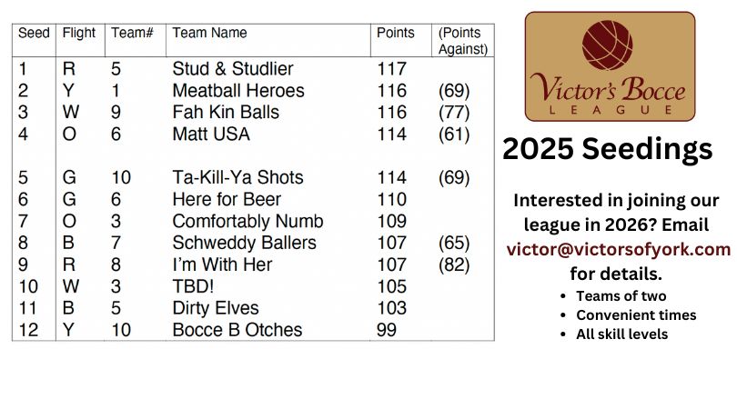Congrats to the Victor’s 2025 Bocce League Winners!