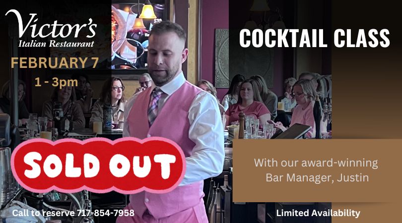 On January 24, Justin will be crafting creative cocktails as well as a couple of Victor’s classic cocktails. Participants will get to sample four cocktails before choosing a full cocktail of their choice from the curated samples.