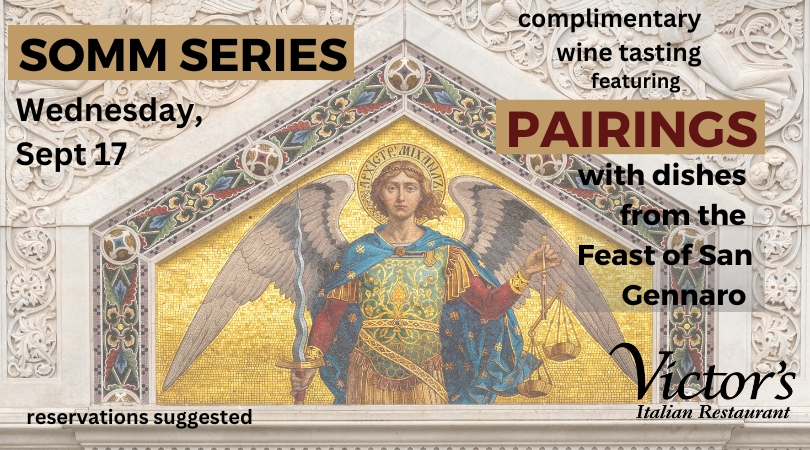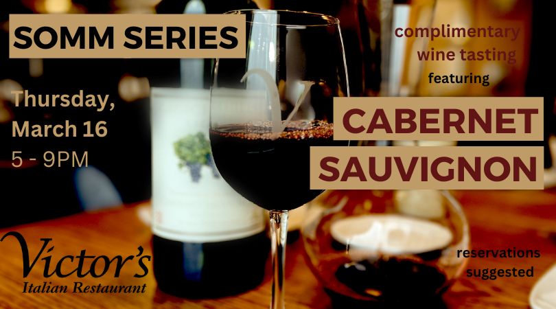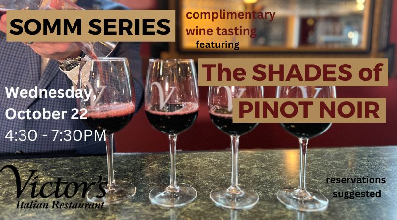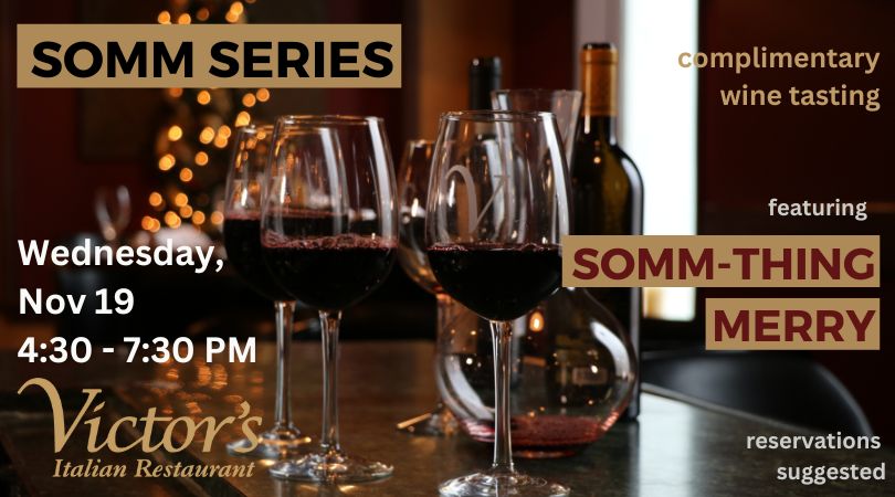 Join us for our next SOMM SERIES session Wednesday, November 19 from 4:30–7:30pm for a special evening of dinner and complimentary wine tasting at Victor’s featuring SOMM-THING MERRY.